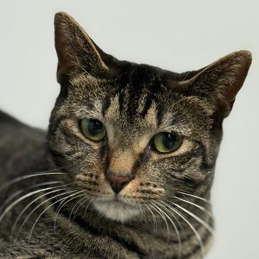 This sweet girl was rescued from the cold streets in November. She was in the ER with a horrible ear infection and URI. She is just a little lady looking for a quiet home and lap to rest on. She loves pets and Cat TV.